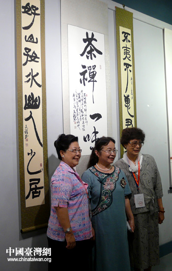 參加海峽兩岸女書法家作品展的臺灣婦女團體。(中國臺灣網 高斯斯 攝)
