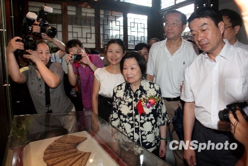 6月23日,回到家鄉福州的臺灣中華婦聯總會主任委員辜嚴倬云女士走進嚴復故居紀念館,認真而仔細地觀看每件展品。嚴復故居紀念館是全國重點文物保護單位,經過2年多的修復,當天開始向公眾開放。 中新社發 楊婀娜 攝