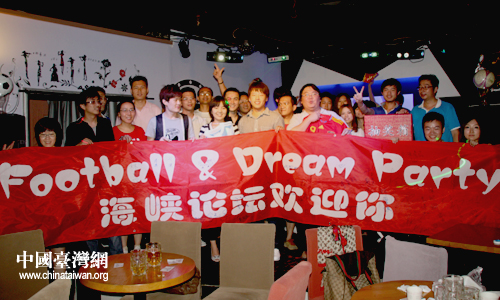 中國臺灣網(wǎng)6月29日北京消息 炎炎烈日,絲毫沒有減退球迷們對世界杯的熱情。28日晚,由本網(wǎng)海峽論壇策劃并舉辦的“football and dream party”,吸引了來自北京大學、人民大學、北京中醫(yī)藥大學、北京聯(lián)合大學等十余所高校的五十多位兩岸大學生參與。兩岸青年們同聲為世界杯助威吶喊,熱情交流,共敘同根情誼。