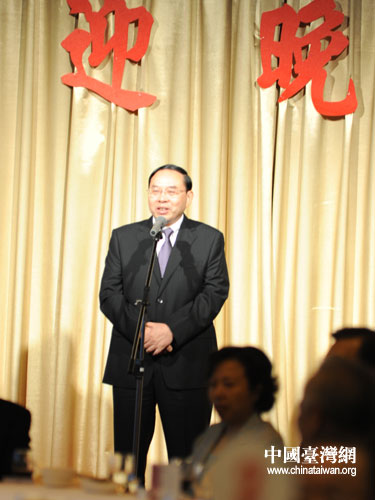 中國國民黨榮譽主席吳伯雄在臺北圓山大飯店會見并宴請中共湖南省委副書記梅克保一行。圖為吳伯雄致辭。(湖南省臺辦 李蘭 攝)