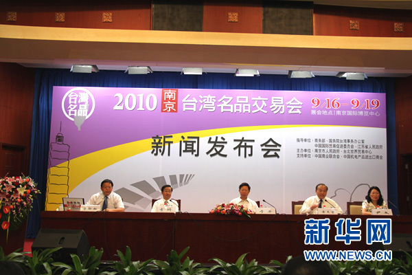 “2010南京臺(tái)灣名品交易會(huì)”8月5日在北京中國(guó)貿(mào)促會(huì)大禮堂召開新聞發(fā)布會(huì),由南京市政府與臺(tái)北世貿(mào)中心聯(lián)合主辦的“2010南京臺(tái)灣名品交易會(huì)”將于9月16日至19日在南京國(guó)際博覽中心舉辦。這是雙方繼去年成功合辦“南京臺(tái)灣名品交易會(huì)”后的又一次合作。發(fā)布會(huì)上,南京市副市長(zhǎng)李琦、臺(tái)北世界貿(mào)易中心副秘書長(zhǎng)黃文榮分別就此次交易會(huì)的規(guī)模、特色進(jìn)行了介紹。