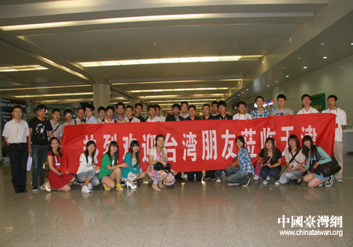 天津大學學生前往機場迎接臺灣同學(天津市臺辦 沈斌 攝)