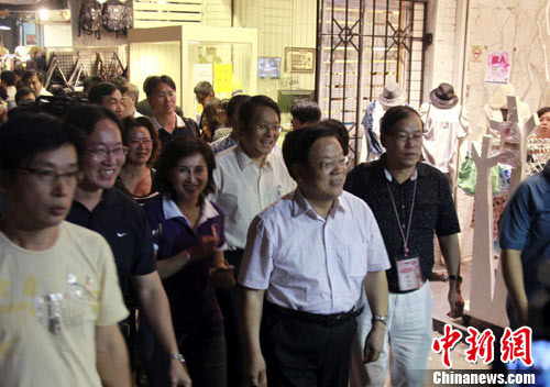 9月3日晚間,蔡武一行在臺中市體驗逢甲夜市。應(yīng)臺灣財團法人沈春池文教基金會邀請,中華文化聯(lián)誼會名譽會長蔡武率中華文化聯(lián)誼會交流訪問團抵臺訪問。中新社記者 劉舒凌 攝