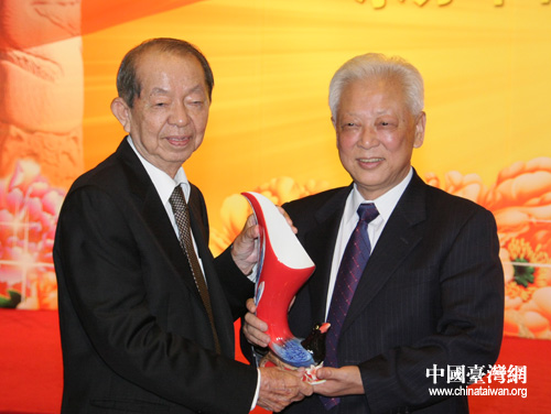 許文龍代表奇美集團向民革中央贈送紀念品(中國臺灣網 孫金誠 攝)