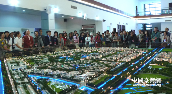 參訪團(tuán)成員27日在參訪天津東麗區(qū)華明新市鎮(zhèn)規(guī)劃,感受中國新農(nóng)村的變化。(中國臺灣網(wǎng) 李徽 攝)