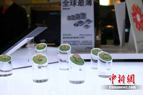 在“臺灣精品館”的精品中,一枚比一角硬幣還小的風扇引來眾多參觀者駐足!芭_灣精品館”相關負責人告訴記者,這枚全球最薄的微型風扇是臺灣建準科技研發(fā)制造,其厚度僅0.3公分,是全球已量產(chǎn)風扇中最薄的微型風扇,被廣泛應用在新一代平板計算機和手機內,其使用極微的電力,即可產(chǎn)生良好的散熱效果。