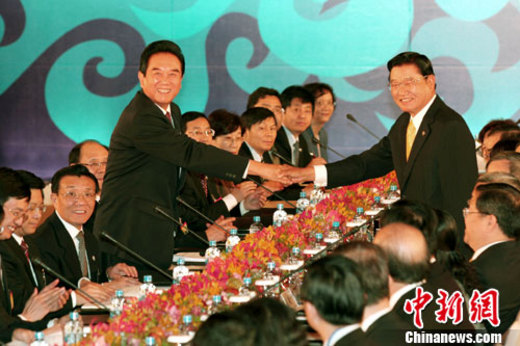 兩岸兩會(huì)領(lǐng)導(dǎo)人第六次會(huì)談今天(21日)在臺(tái)北舉行,據(jù)臺(tái)灣“今日新聞網(wǎng)”報(bào)道,臺(tái)灣海基會(huì)董事長(zhǎng)江丙坤致詞時(shí)表示,過(guò)去幾年來(lái),兩岸間文化、教育等領(lǐng)域的交流,已經(jīng)累積了相當(dāng)?shù)慕?jīng)驗(yàn),雙方可以在既有的基礎(chǔ)上,或在已經(jīng)簽署生效的協(xié)議架構(gòu)下,積極擴(kuò)大往來(lái)。