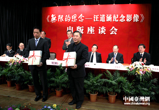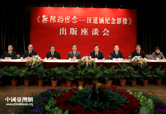 中國臺灣網上海12月24日消息 24日下午,由江澤民同志親筆題寫書名、曾慶紅同志作序的《無限的思念——汪道涵紀念影像》出版座談會在上海舉行。中共中央臺辦、國務院臺辦主任王毅,海峽兩岸關系協會會長陳云林,中共上海市委常委楊曉渡、楊振武及汪老家屬、各界人士出席。