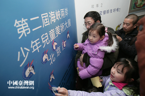 1月1日,“第二屆海峽兩岸少年兒童美術(shù)大展”北京展在北京今日美術(shù)館隆重舉行,展覽將持續(xù)到1月9日。這是本屆大展繼 2010年12月18日在臺北孫中山紀念館盛大開幕后,在大陸地區(qū)的首次展覽。(中國臺灣網(wǎng)發(fā))