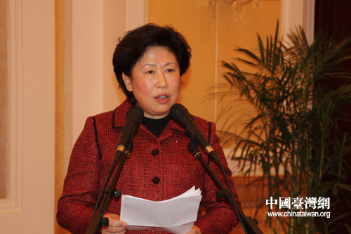 招待會(huì)上,中共中央統(tǒng)戰(zhàn)部副部長(zhǎng)尤蘭田代表中央統(tǒng)戰(zhàn)部和杜青林部長(zhǎng),發(fā)表了熱情洋溢的講話。她充分肯定了黃埔軍校同學(xué)會(huì)在過去一年發(fā)揮自身優(yōu)勢(shì),對(duì)臺(tái)工作所取得的顯著成績(jī)。她表示,希望在新的一年里,黃埔軍校同學(xué)會(huì)繼續(xù)遵循中央對(duì)臺(tái)工作的大政方針,牢牢把握兩岸關(guān)系和平發(fā)展主題,立足自身特點(diǎn)和優(yōu)勢(shì),拓展思路,構(gòu)建載體,打造亮點(diǎn),培育品牌,提升效能,廣泛團(tuán)結(jié)海內(nèi)外黃埔同學(xué)和親友,為開創(chuàng)兩岸關(guān)系和平發(fā)展新局面、推進(jìn)祖國(guó)和平統(tǒng)一大業(yè)作出新的貢獻(xiàn)。