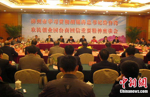 31日,福建漳州各界舉行座談會熱議胡錦濤給福建漳浦和漳平永福臺灣農民創業園臺商農民的回信。與會當地知名臺商表示,將繼續深耕大陸,相信企業在大陸發展蒸蒸日上。