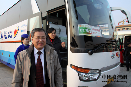 出席第十一屆全國人民代表大會第四次會議的臺灣團(tuán)代表抵達(dá)天安門廣場。(中國臺灣網(wǎng) 王偉 攝)