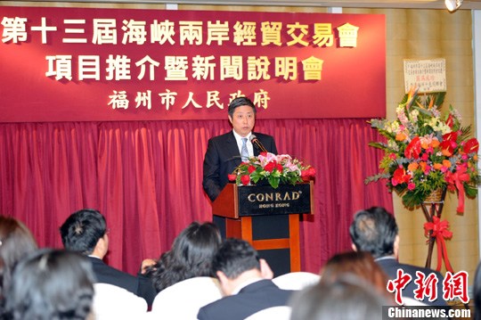 3月18日,作為大陸最早舉辦兩岸經貿展會和對臺經貿政策先行先試的重要窗口、“第13屆海峽兩岸經貿交易會”開幕前,為隆重其事福州市政府在香港舉辦項目推介會,副市長陳為民到會披露福州建設及發展閩、港、澳、臺經貿合作新態。中新社發 鄭祚聲 攝