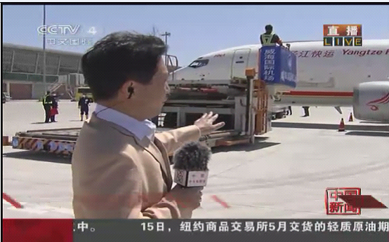 長鬃山羊“喜洋洋”、“樂洋洋”以及梅花鹿“繁星”和“點點”抵達機場后,被小心的運下飛機。圖片來源:中央電視臺