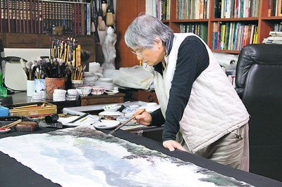 最先被觸動的是畫家。黃公望,元代四家之一,所作《富春山居圖》成“畫中之蘭亭”。富春山水和畫家的傳世之作吸引兩岸畫家躍躍欲試。“在分藏兩岸的《富春山居圖》今年6月于臺北合展時,我們也來展示一下當代畫家眼中、畫中的富春山。”臺灣師范大學美術研究所教授、畫家江明賢對本報記者說。他積極響應“兩岸畫家合畫富春山”的創意,與大陸畫家宋雨桂、王明明兩次深入富春山寫生,由杭州﹑富陽﹑建德等縣市到千島湖,實地觀察自然生態與人文特色,搭乘直升機鳥瞰,要畫出600年后的富春山。