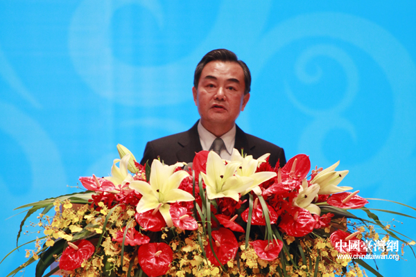 中共中央臺(tái)辦、國(guó)務(wù)院臺(tái)辦主任王毅在第三屆海峽論壇大會(huì)上講話。(中國(guó)臺(tái)灣網(wǎng) 普燕 攝)