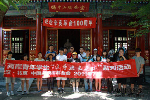 中國臺灣網7月8日北京消息 由臺灣十大杰出青年基金會成員與大陸大學生志愿者共同組成的“追尋歷史足跡”系列活動——首義之旅兩岸青年學子參訪團7日到坐落于香山碧云寺的孫中山紀念堂進行參訪,并瞻仰了中山先生衣冠冢。
