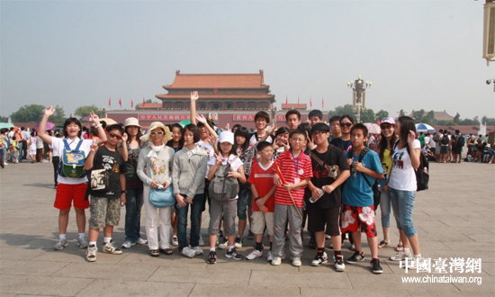 雖然正值三伏暑熱,來到天安門廣場的同學們卻都很興奮。看到瞻仰毛主席的隊伍如此宏大,活潑的臺灣女生不禁感嘆:“哇,比臺灣的偶像開演唱會的人還要多耶”,引得大家一陣歡笑。同學們爭先恐后的拍照,并不時驚呼:“哇!我來過天安門了耶!”隨行的臺灣老師康春菊表示,“只有在課本、電視上才能看到的天安門真實的出現在眼前,只能用‘感動’來形容”。