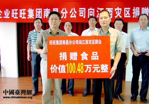 旺旺南昌分公司向江西災區捐贈100萬元食品(圖片來源:江西省臺辦)
