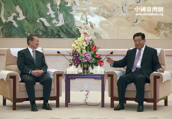 中國臺灣網8月25日北京消息 25日下午,中共中央政治局常委、全國政協主席賈慶林在全國政協禮堂會見了臺灣兩岸民意代表交流基金會董事長饒穎奇為團長的臺灣民意代表交流參訪團一行。(中國臺灣網 田云鵬 攝)