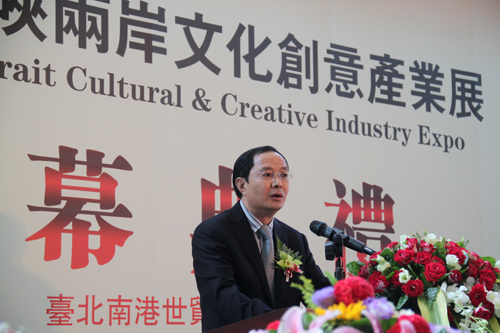 中華文化聯誼會顧問歐陽堅代表大陸主辦方致辭。他表示,近年來大陸積極打造政策支撐、公共技術和信息服務、投融資服務、文化貿易與交流合作、人才培養等五大平臺,努力把文化產業培育成為新的經濟增長點,而兩岸的文化產業擁有共同的中華文化基因,合作潛力巨大。因此,自去年開始,中華文化聯誼會與臺灣“商業總會”合作舉辦“海峽兩岸文化創意產業展”,為兩岸文化產業界架構新的合作渠道,推動兩岸文化企業整合資源、優勢互補,共同將中華文化的豐沛資源轉化為中華文化軟實力。