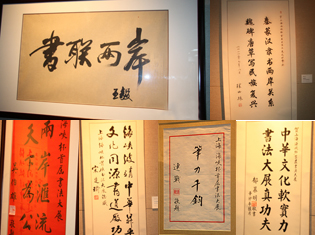 海峽兩岸文化交流盛事上海“海峽杯”首屆書法大展11日在上海圖書館開幕。國臺辦主任王毅、海協會會長陳云林,以及連戰、吳伯雄、宋楚瑜、郁慕明、蔣孝嚴等兩岸知名人士的墨寶同臺展出。 |