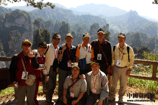 臺(tái)灣嘉賓于張家界崇山峻嶺間合影留念。(中國(guó)臺(tái)灣網(wǎng) 王思羽 攝)