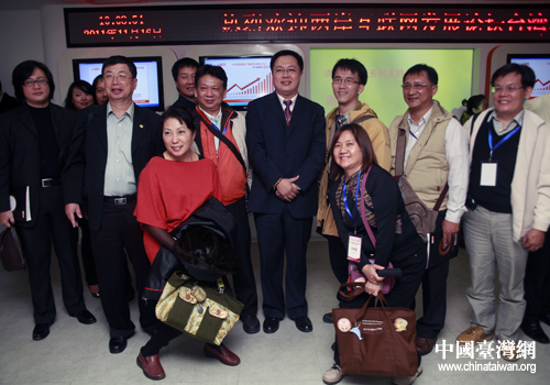 臺(tái)灣嘉賓參觀在京知名網(wǎng)站,在參訪過(guò)程中合影留念。(中國(guó)臺(tái)灣網(wǎng) 于斯文 攝)