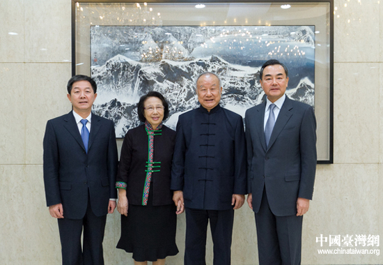 王毅主任、葉克冬副主任與臺灣著名畫家劉國松合影。(中國臺灣網(wǎng)發(fā) 鄧鴻偉攝)