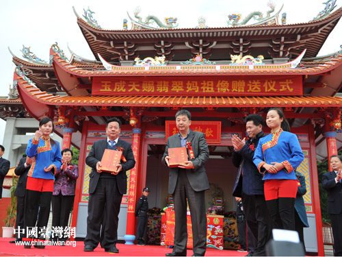 10日下午,湄洲媽祖祖廟受贈翡翠媽祖像儀式,在莆田市湄洲島天后廣場舉行。(中國臺灣網 發)