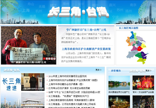 據了解,今天正式上線的《長三角-臺灣》網欄設有“海峽交流區”、“臺商—轉型經”、“圖文長三角”、“多彩城市”、“長三角速遞”等專題內容。