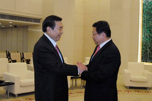 日前,商務部部長陳德銘會見臺北世貿中心董事長王志剛一行,雙方就兩岸產業合作、推動大陸赴臺投資和采購、ECFA后續協商等事宜深入交換了意見。圖片來源:商務部網站