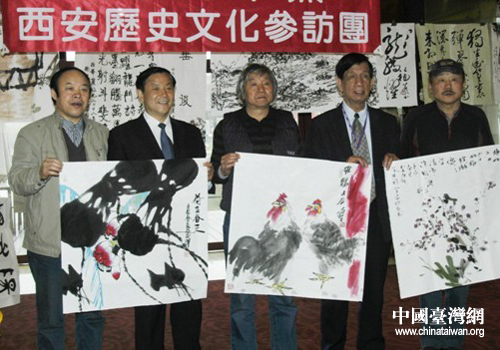 中國臺灣網3月21日西安消息 3月20日,陜西美協與臺灣中南部書畫家聯誼筆會在西安舉行。陜西省臺辦主任閆超英、副主任何銳出席了本次活動。
