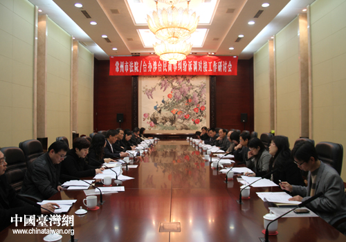 常州市法院/臺辦涉臺民商事糾紛訴調(diào)對接工作研討會現(xiàn)場。(圖片來源:常州市臺辦)