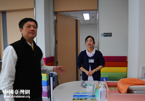禾新醫(yī)院副院長(zhǎng)周明仁介紹禾新醫(yī)院優(yōu)質(zhì)設(shè)備。(上海市臺(tái)辦 常志康 攝)