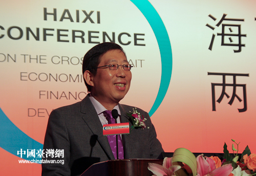 海西2012兩岸經(jīng)濟暨金融研討會于12日上午首度在北京登場。北京大學吳志攀常務副校長出席并致辭。(中國臺灣網(wǎng) 楊麗 攝)