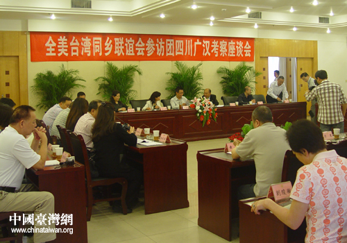 全美臺胞同鄉聯誼會參訪團四川廣漢考察座談會現場。(德陽市臺辦 葉繼紅 攝)