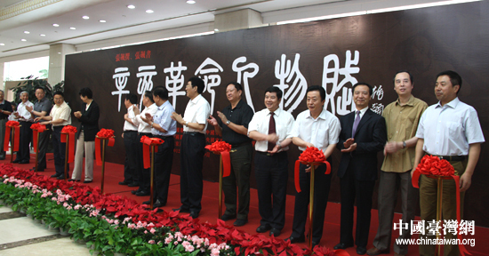 2012年5月27日,由著名書法家張飆先生撰、書的《辛亥革命人物賦》書法展在全國政協禮堂開幕。圖為剪裁儀式。(中國臺灣網 楊永青 攝)