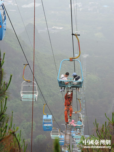 中國臺灣網(wǎng)6月1日桂林消息 5月26日,廣西桂林,大雨低溫。當天上午,桂林堯山觀光纜車因機械故障停止運行,78名游客被困1400米段長的高空纜車,其中有22名臺灣游客。