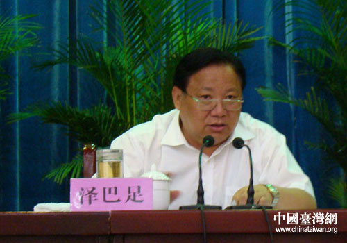 甘肅省委常委、統(tǒng)戰(zhàn)部長(zhǎng)澤巴足講話(圖片來源:甘肅省臺(tái)辦)
