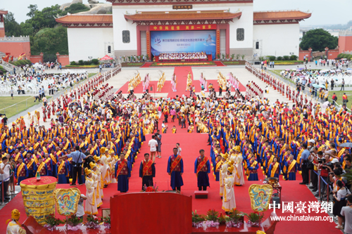 6月15日上午,兩岸媽祖信眾在湄洲島天后廣場舉行了盛大的媽祖祭祀大典。(中國臺灣網 張潔 攝)