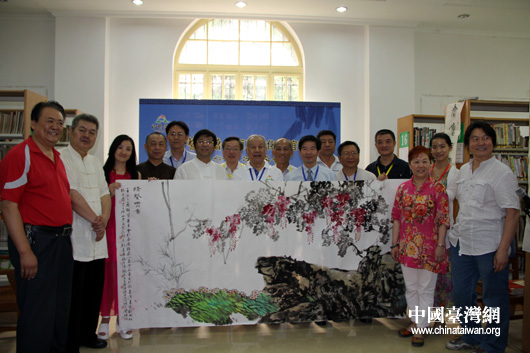 兩岸書畫家合影留念。(中國(guó)臺(tái)灣網(wǎng) 芮益芳 攝)
