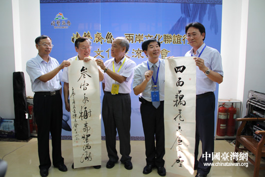 中國(guó)臺(tái)灣網(wǎng)7月3日濟(jì)南消息 “家家泉水,戶戶垂柳”,泉城處處好風(fēng)光,引兩岸文人競(jìng)折腰。2日下午,兩岸文化交流筆會(huì)在山東省圖書館奎虛樓舉行,“情系齊魯”情系大明湖畔,文人雅士恣意揮毫,灑脫潑墨,風(fēng)景這邊獨(dú)好。