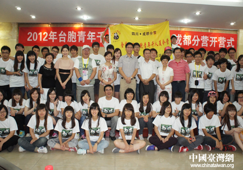 中國臺(tái)灣網(wǎng)7月8日成都消息 7月7日下午,由四川省臺(tái)聯(lián)和成都市臺(tái)聯(lián)聯(lián)合舉辦的全國臺(tái)聯(lián)2012年臺(tái)胞青年千人夏令營四川·成都分營在蓉開營,來自臺(tái)灣大學(xué)、臺(tái)灣輔仁大學(xué)、臺(tái)灣交通大學(xué)等36所高校的近70名臺(tái)灣大學(xué)生期盼已久的“熊貓故鄉(xiāng)”之行正式開啟。