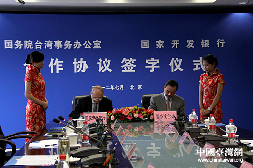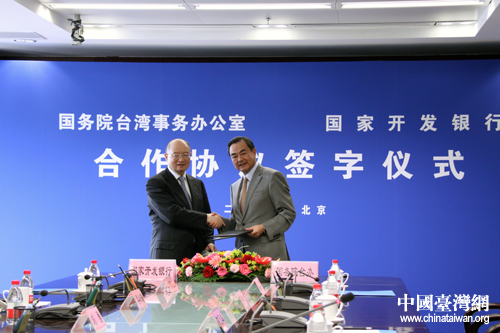 中國臺灣網7月18日北京消息 國務院臺灣事務辦公室與國家開發銀行18日在北京舉行《促進兩岸經濟繁榮與企業共同發展合作協議》簽字儀式,雙方將在支持大陸臺資企業發展和陸資赴臺等領域通力合作,促進兩岸經濟共同發展。國臺辦主任王毅、國開行董事長陳元出席儀式并代表雙方簽字。