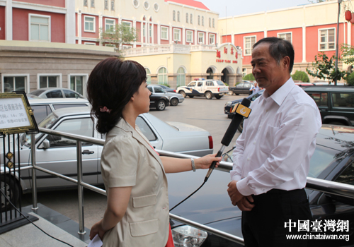 北京臺資企業協會理事長林清發接受采訪。(圖片來源:北京朝陽區臺辦)