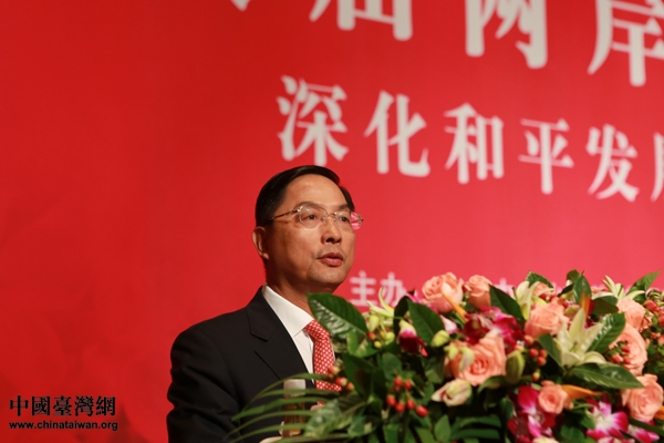 圖:中共中央臺辦特邀嘉賓蔣耀平在第八屆兩岸經貿文化論壇上作題為《四年來兩岸經濟關系的回顧及對未來的展望》的主題演講。(中國臺灣網 于斯文 攝)