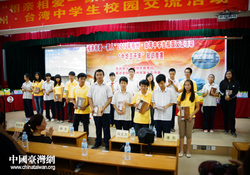 在梧州市第十五中學的禮堂,氣氛緊張而熱烈,梧州學子和臺灣學子在“中華五千年”知識競賽首度會面,兩地選手賽場上共同商量、互相學習。臺上的兩岸青少年充分發(fā)揮自己的聰明才智,臺下的觀眾掌聲熱烈持久。通過比賽,海峽兩岸青少年加深了對中華五千年文明史的認同,進一步增強了作為中華兒女的民族認同感和自豪感。