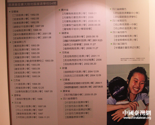 慈濟援建大陸的54學校列表(中國臺灣網 王文英 攝)