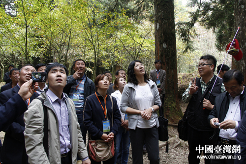 中國臺灣網11月12日高雄消息 由中國宋慶齡基金會組派的“大陸基層農民代表參訪團”昨日走進臺灣著名景區——阿里山,體驗阿里山“擎天神木”奇觀。
